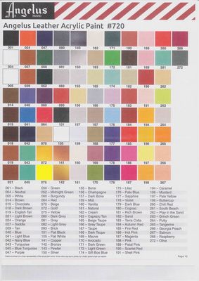 More than 100 brilliant, opaque colors used for decorating, staining, and edging smooth leather, pleather and some vinyl articles. Ideal for painting special areas on western boots, belts, tennis shoes, purses, jackets, saddles etc.