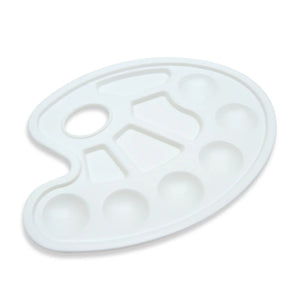 The Artist Palette is the perfect tool for any artist. It features 10 paint wells for easy mixing and multiple colors, as well as a thumb hole for ease of use and control. The palette is made from molded plastic, making it easy to clean and suitable for all water-based paints.
