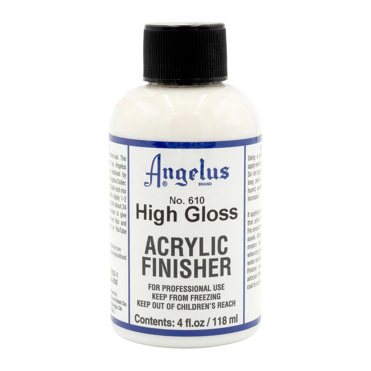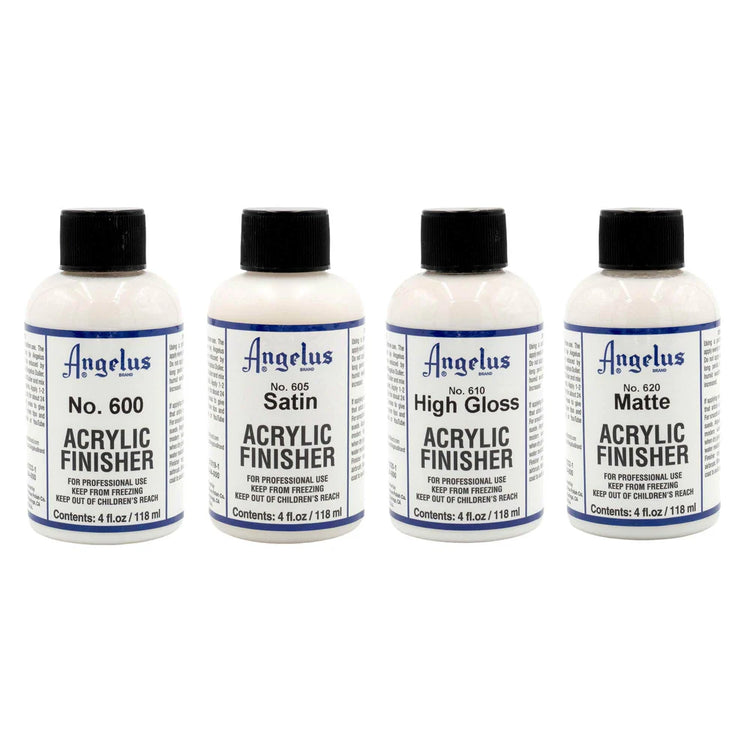 After using Angelus Leather Acrylic Paint, apply Angelus Acrylic Finisher to your customized sneakers to help protect the paint from minor scratches/scrapes. Available in a variety of finishes from Matte, all the way up to High Gloss.