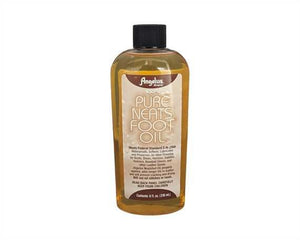 Angelus 100% Pure Neatsfoot Oil is a material preserver and water repellent for leather. Waterproofs, softens, lubricates, and preserves. An ideal dressing for boots, shoes, harnesses, saddles, holsters, baseball gloves, and other leather goods. Adds longer life to leather and will prevent cracking and drying. Will not rot stitches or laces. NOT INTENDED FOR USE ON SUEDE OR NAPPY LEATHER. Size 88.27mL Directions: Shake well before using. Use warm if possible. Cleanse surface to be treated. For extremely dirty items, clean with lukewarm water and Angelus Saddle Soap. Remove excess soap with a damp cloth. While leather is still damp, but not wet, apply oil. Apply freely and rub in thoroughly with soft brush or cloth. When dry, repeat the application. Allow to dry before using or wearing items. Made in: UNITED STATES (USA)