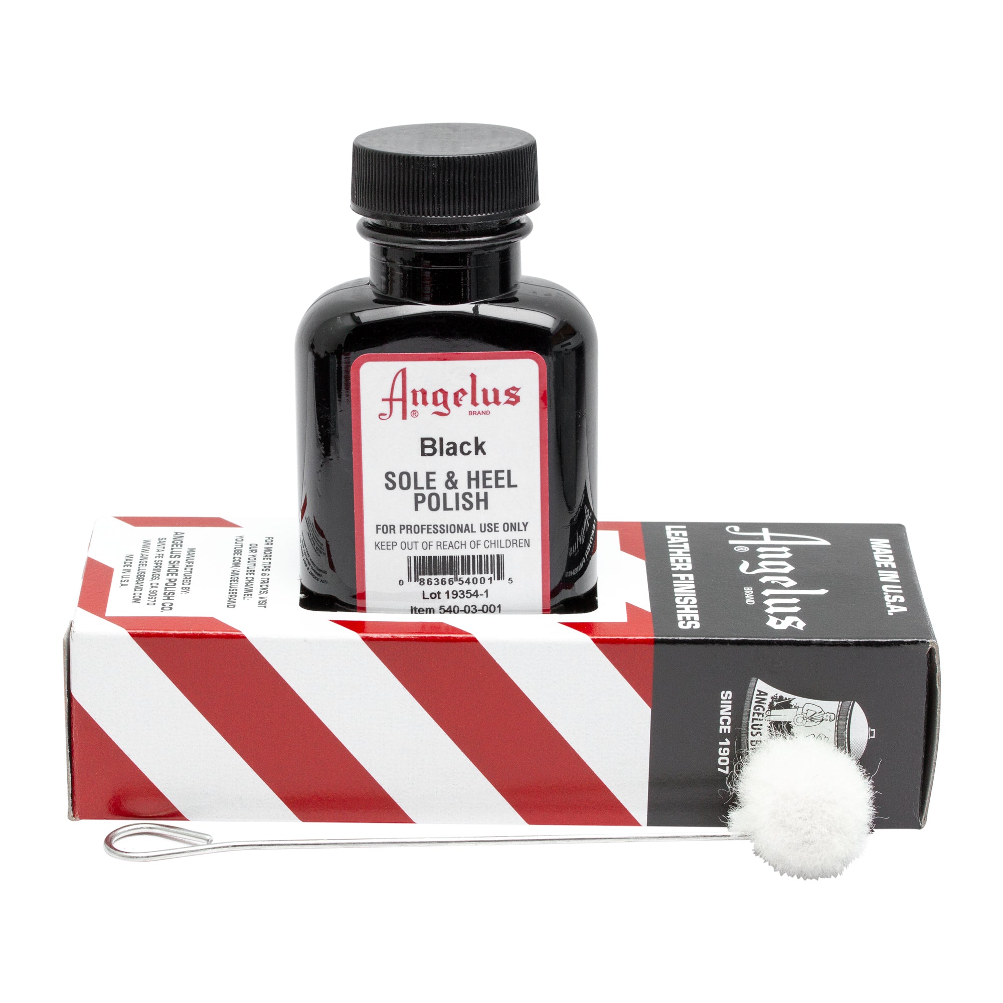 Angelus Sole and Heel Dressing is an edge finish for shoes and boots that dries to a gloss. No buffing required. Covers scrapes and marks accumulated on a sole or heel. Not intended for use on wood clogs. When dry, will not rub off.