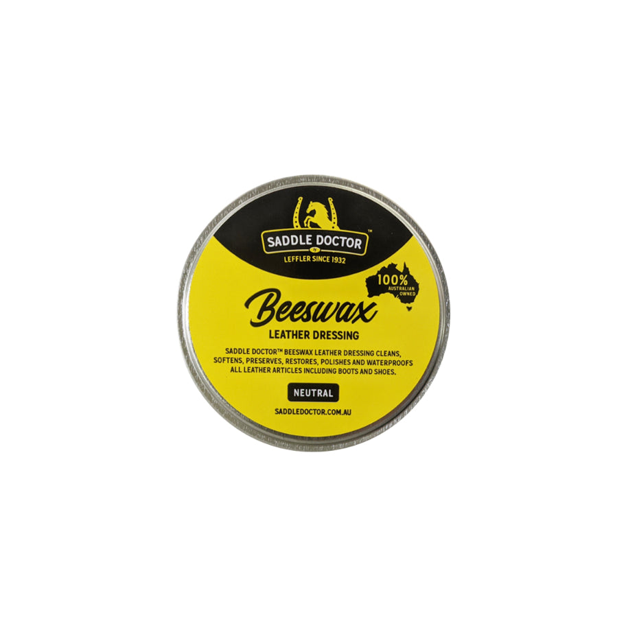 Saddle Doctor Beeswax Leather Dressing cleans, softens, preserves, restores, polishes and waterproofs all leather articles including boots and shoes.