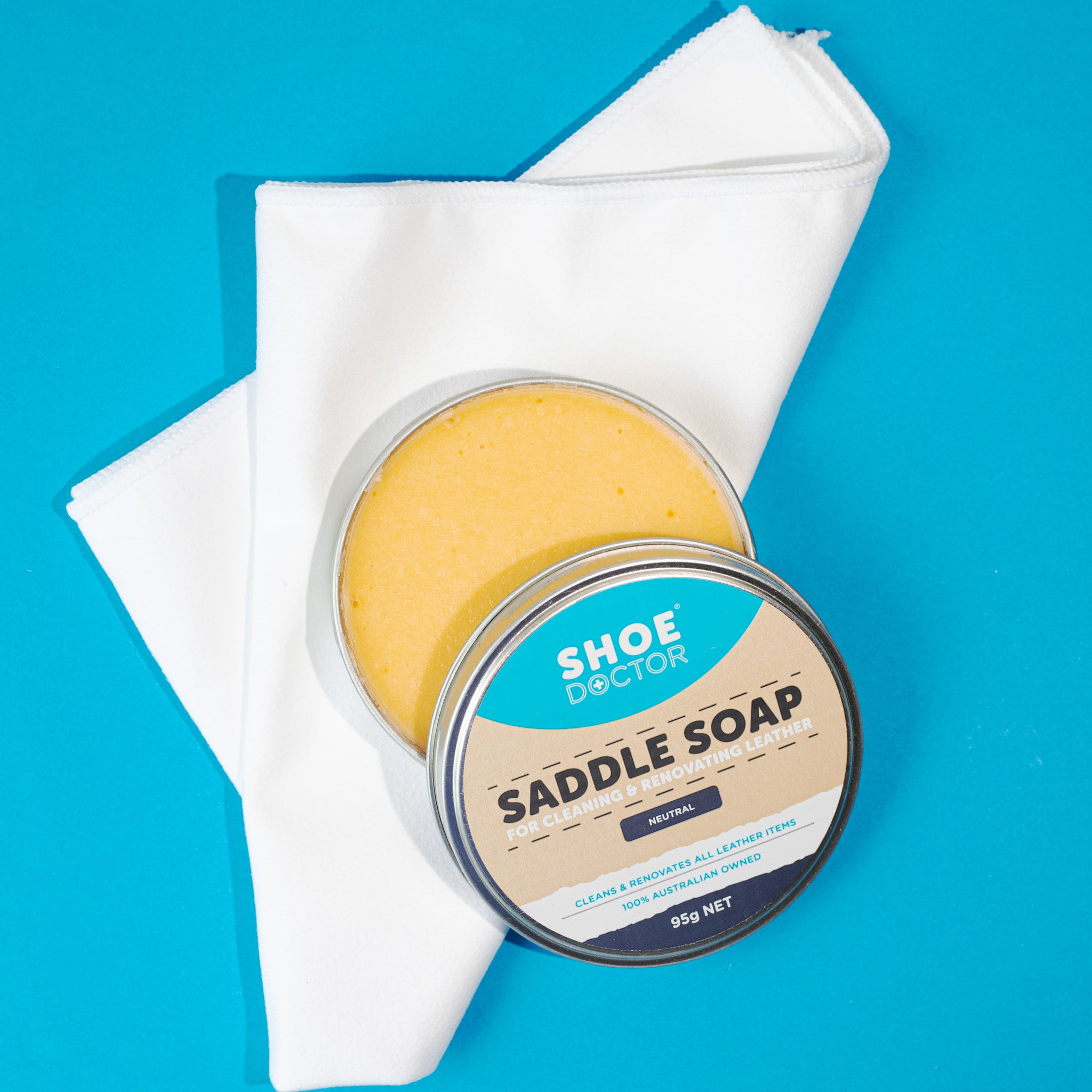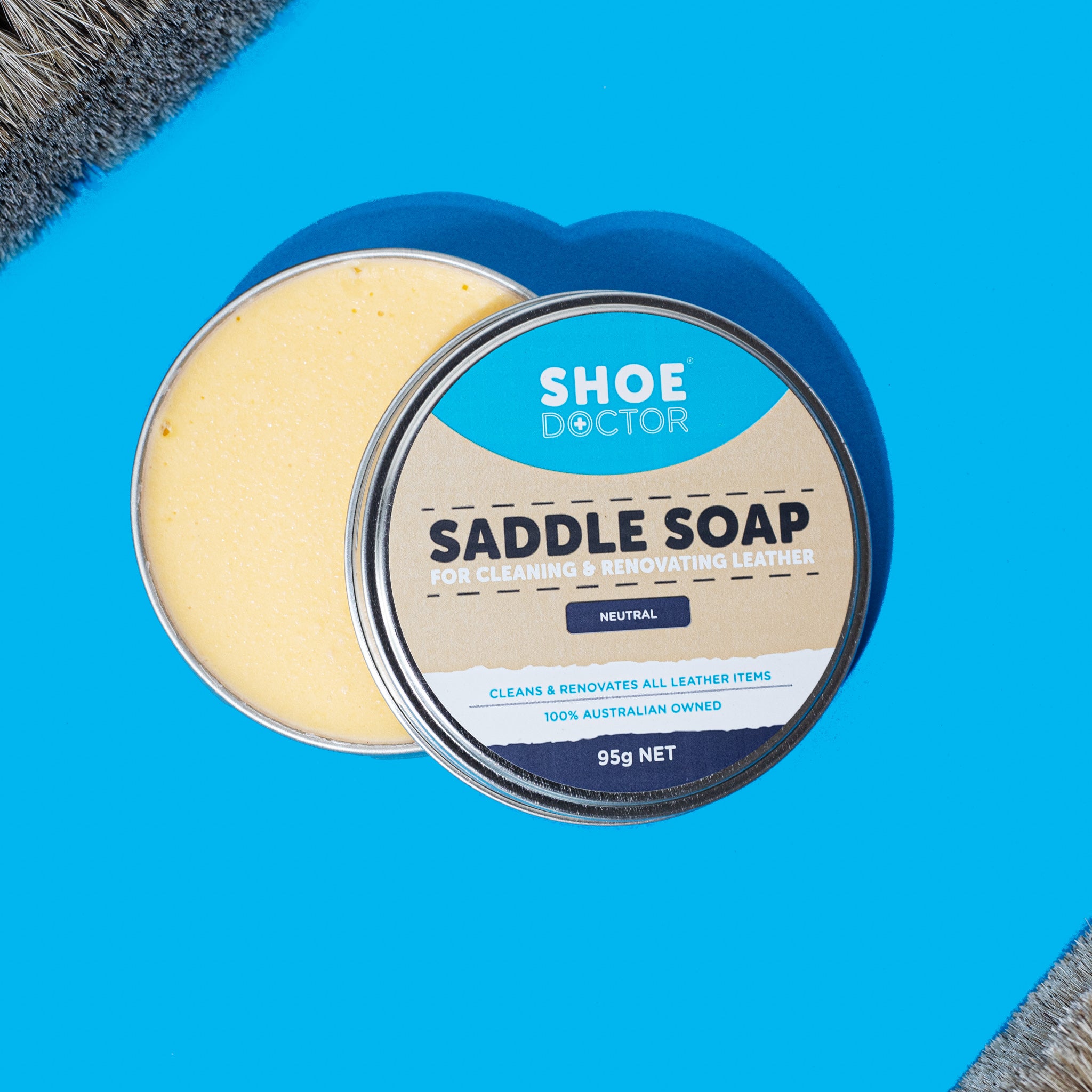 Apply with damp sponge and rub lightly until a lather develops. Work this into the leather thoroughly. When dry, finish with soft cloth. Shoe Doctor® Saddle Soap will not rub off.