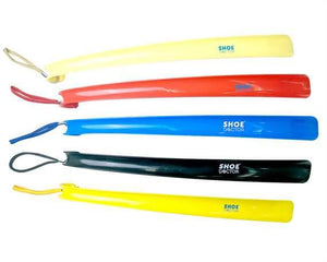 SHOE DOCTOR 40cm LONG PLASTIC SHOE HORN. Shoe horns to suit your height, comfort and agility level. Long shoe horns assist in eliminating the need for bending. With a tag for hanging after use. Various colours. | Universal curve for all heel sizes | Ideal for shoes, boots and sneakers.