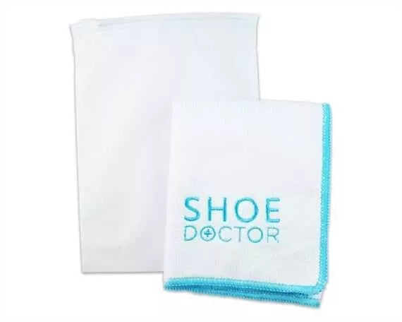 SHOE DOCTOR PREMIUM TERRY MICROFIBRE CLOTH is great for wiping away the dirt & suds while leaving behind no residue. Great for use on leather, suede, vinyl, rubber, canvas and fabric. Lint-Free / Non-Abrasive. Use damp for general cleaning, Wet for heavily soiled cleaning. Absorbs up to 7 times its weight in moisture. Ability to undergo hundreds of washes, providing the cloth has not been mistreated. Size: 30cm x 30cm