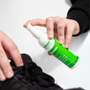 Eliminate tough odours using Sneaker Doctor™ Deodoriser! Perfect for eliminating odours on shoes, boots, clothing, hats, purses, bags, furniture & more! Unlike other products Sneaker Doctor™ Deodoriser doesn’t just mask odours, it eliminates them! The scent-free formula ensures you that the odour causing agents (bacteria) are completely gone. The 118mL pump spray makes it easy to apply on all materials.