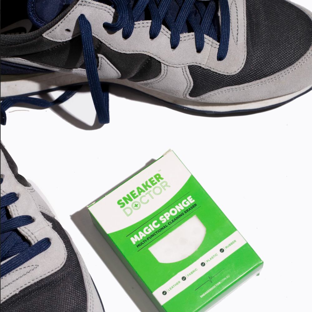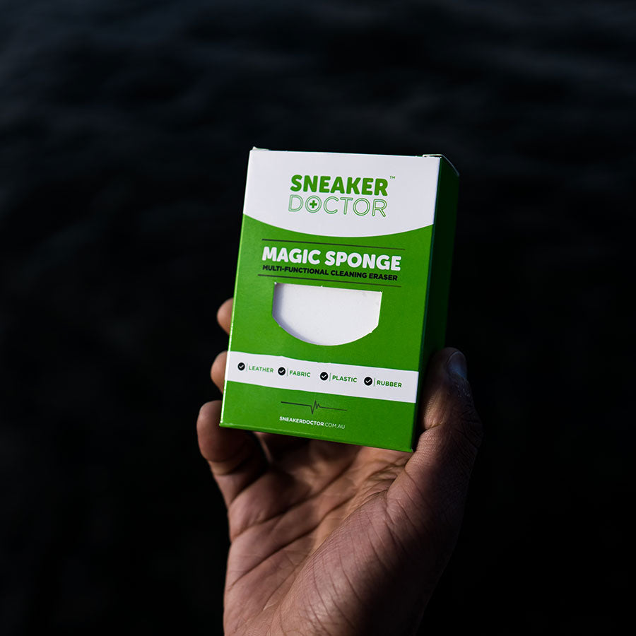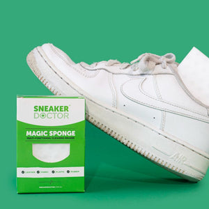 Dampen the Sneaker Doctor™ Magic Sponge with water orSneaker Doctor™ Waterless Foam Cleaner and rub over affected areas to remove blemishes. You can tear up the sponge to get into all those difficult nocks and crannies.