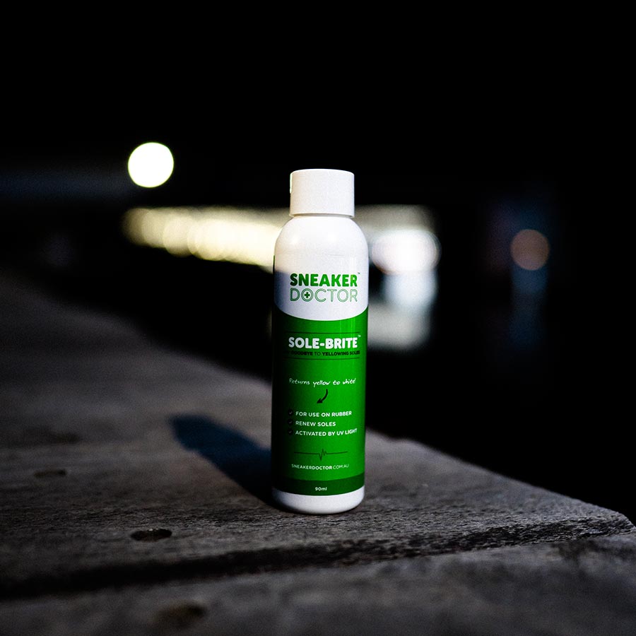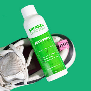 Sneaker Doctor™ Sole-Brite Bring your yellowed soles/midsoles back to life with this amazing product! Completely reverses oxidation that usually occurs on icy/rubber soles. Safe for all soles including Glow in the Dark and will not hinder glow properties