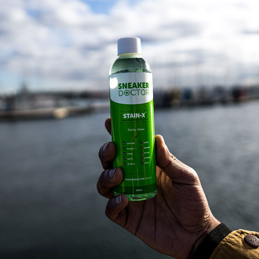 Sneaker Doctor™ Stain-X is a premium shoe cleaner that's safe for all materials and very affordable. One of the most popular cleaners and very versatile. Strong enough to clean soles and sidewalls while being gentle enough to clean suede, nubuck and fabric.