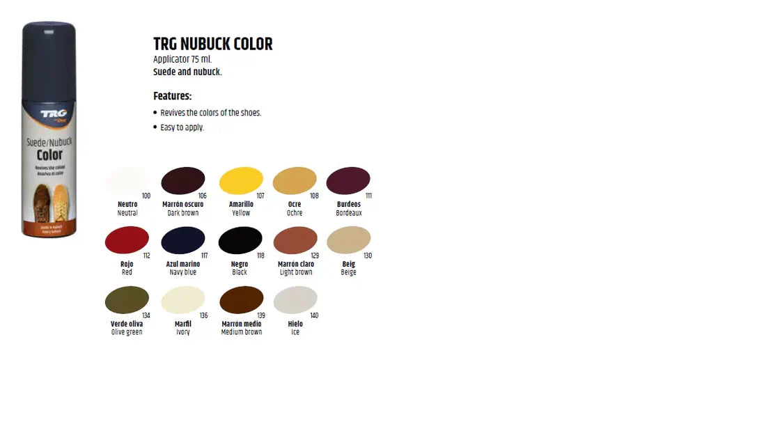 - TRG the One Suede/Nubuck Color, easy-to-use liquid color enhancer for existing color for suede and nubuck.