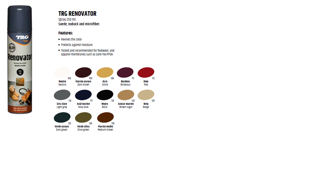 Suede Renovator Revives the color of suede, nubuck and microfiber Application: Suede, nubuck and microfiber. Features: